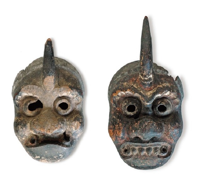 上人は夫婦に本当の姿を見せてみてほしいと伝えると、“自分の姿は大変醜いので見せるのは恥ずかしいが……待っていて欲しい”と奥の部屋に入っていきました。待っていると大きな叫び声があがり、上人がこっそり覗くと、すでに夫婦の姿はなく、そこには頭に角を生やした鬼の面が2つ残っていたそうです。夫婦は互いの姿を面に刻み、形見として上人に残したのだと伝わっています。